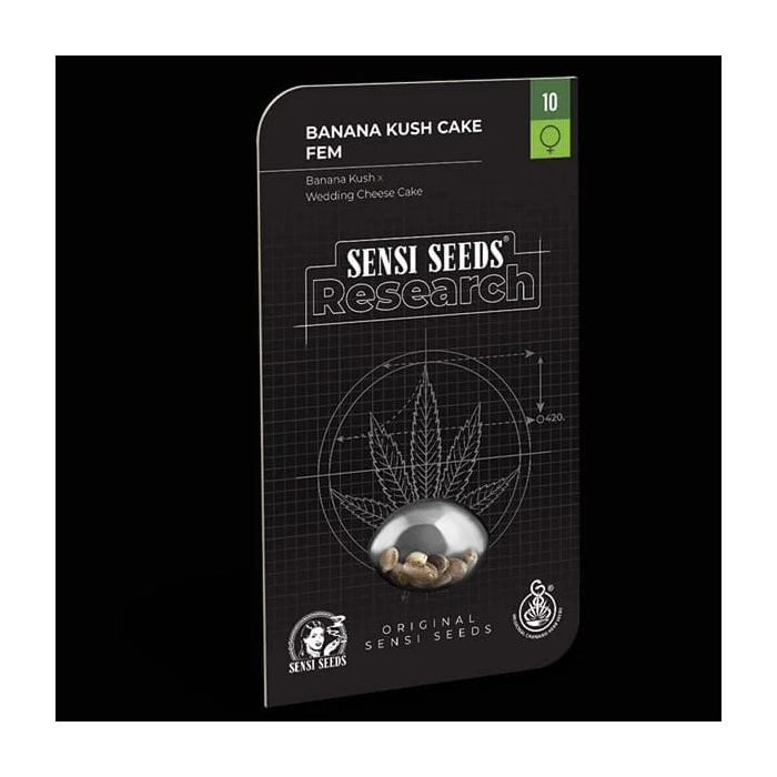 Banana Kush Cake Feminized is 65% indica and 35% sativa. It has several different phenotype variations, and is one of Sensi Seeds’ most genetically intriguing strains, developed as part of the 2021 Research project. Its parent plants include Banana Kush and Wedding Cheesecake, both of which have impressive genetics in their own right. The strain grows to average heights, and produces a skunky, fruity aroma. The high is powerful, soothing and dreamy, with a hint of sativa buzz.